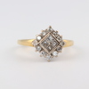 | 57 | A yellow gold testing as 22ct diamond cluster ring, set 5 diamonds to the centre surrounded by 14 diamonds, size J 1/2, 4.3 grams | 200-250 |
