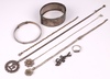 | 79 | An engraved silver bangle, an engraved silver bracelet, a flat link silver bracelet 18cm, a silver pendant in the form of a spider's web hung on a fine silver chain and other items of silver jewellery, 58.2 grams gross and 1 other chain and pendant | 40-60 |