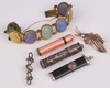 | 81 | A lava and gilt bracelet decorated a portrait bust, a gilt metal and pink enamelled scent bottle, 1 other, a needle case and 2 gilt bracelets | 40-60 |