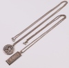| 62 | A silver ingot pendant hung on a fine silver chain, a silver St Christopher hung on a silver belcher link chain 31 grams | 30-40 |