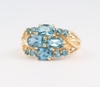 | 63 | A 9ct yellow gold topaz and aquamarine cluster ring, size N 1/2, 5.3 grams | 120-150 |