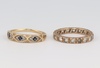 | 72 | A 9ct yellow gold paste set eternity ring, size L and a 9ct yellow gold paste set half eternity ring (misshapen) size P, 3.8 grams gross | 60-80 |