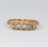 52 | An 18ct gold and platinum illusion set 5 stone diamond dress ring, size I 1/2, 2.7 grams | 120-150 |