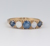 55 | A 9ct yellow gold dress ring set 2 opals and 3 sapphires, size K, 1.68g gross | 100-140 |