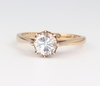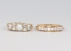 61 | A 14ct yellow gold dress rings set 6 cubic zirconia and 1 other set 9 cubic zirconia, sizes K and J 1/2 | 100-140 |