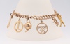 71 | A 9ct yellow gold charm bracelet with 8 charms including wishbone, teapot, golfer, etc, with a 9ct padlock, 15.6 grams | 380-440 |