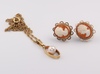 75 | A yellow gold, testing as 14ct necklace 44cm, together with a 9ct yellow gold cultured pearl pendant and a pair of 9ct cameo ear studs gross weight 7.4 grams | 120-150 |
