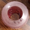 A gilt metal reeded oil lamp with Corinthian column capital and yellow glass reservoir with pink etched glass shade 77cm h £60-80