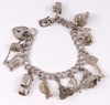 94 | A silver multi link charm bracelet hung numerous charms with padlock clasp, 18cm, 42 grams gross | 40-50 |