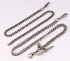 96 | A silver double Albert watch chain 39cm, together with 1 other Albert watch chain (no T-bar), 36cm, 67 grams | 40-60 |