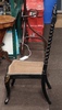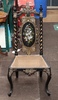 A Victorian lacquered and inlaid mother of pearl high back chair, the slat back inlaid a floral panel, the seat of serpentine outline and 1 other (the back with iron repair) £80-120