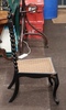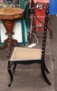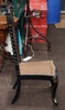 A Victorian slipper shaped ebonised nursing chair upholstered in white material on turned supports with stretcher £40-60