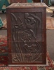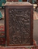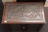 • A Chinese heavily carved hardwood cabinet, fitted a drawer enclosed by a pair of panelled doors, carved dragons flowers and foliage 56cm h x 63cm w x 37cm d