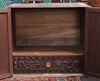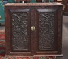 A Chinese heavily carved hardwood cabinet, fitted a drawer enclosed by a pair of panelled doors, carved dragons flowers and foliage 56cm h x 63cm w x 37cm d £60-80
