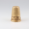 | 124 | An Edwardian yellow gold, testing as 18ct engraved thimble, monogrammed PF, 5 grams, cased | 240-280 |