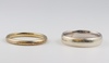 | 125 | A 9ct white gold wedding band, size N, 3.2 grams together with a 9ct yellow gold wedding band, size N, 1.8 grams | 120-150 |