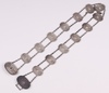 | 116 | A Japanese Meiji Period silver belt made from silver 100 mon charms each with jungin (pure silver) mark, 69 cm, 112 grams | 80-120 |