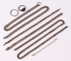 | 124 | A curb link chain 39cm, 1 other (a/f) 46cm, a section of curb link chain 17cm, a rope twist bracelet 17cm and 2 dress rings | 40-50 |