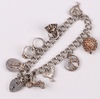 | 131 | A silver fancy link charm bracelet hung 8 charms and with padlock clasp 19cm, 34 grams | 40-50 |