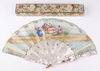 | 135 | A 19th Century fan with printed panel depicting children and play and with pierced mother of pearl guards 25cm, cased, together with a letter dated 21/9/43 | 100-150 |