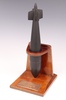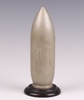 | 154 | A wooden model of The Grand Slam Bomb (medium capacity) 22,000 LB (10,000 kilogrammes earthquake bomb) raised on a turned wooden stand 17cm x 7cm. The Grand Slam was the second bomb Wallis designed after the success of the bouncing bomb. The bomb was even larger than the Tallboy and there was still no aircraft capable of lifting it to its optimal altitude. Like the Tallboy it could be dropped from a lower height and would enter the earth at near supersonic speed, penetrating to a depth of up to 20m before exploding. The Grand Slam was also used on strategic German targets such as V-2 rocket launch sites, the V-3 supergun bunker, submarine pens and the battleship Tirpitz, as well as large civil constructions such as viaducts and bridges. | 400-600 |