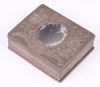 138 | A 19th Century Continental engraved silver box, the hinged lid embossed cornucopias and with glass panel to the centre, 3.5cm x 8cm x 6cm, 128 grams gross | 50-75 |