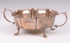 150 | A silver twin handled bowl with wavy border on hoof supports, Birmingham 1938 by Martin Hall & Co., 97 grams | 50-70 |