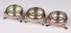 156 | Three Georgian silver salts (marks rubbed) with associated glass liners, 111 grams | 60-80 |