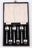 | 178 | A cased set of 6 silver coffee spoons Birmingham 1952 with Coronation hallmark by James Dixon & Sons, 85 grams | 50-75 |