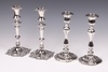 184 | A pair of silver plated Rococo style candlesticks with detachable sconces 24cm and a similar pair of candlesticks 23cm | 50-75 |