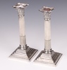 189 | A pair of stepped silver plated reeded candlesticks with Corinthian column capitals 24cm | 40-50 |