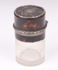 193 | An Edwardian circular cut glass, tortoiseshell pique ware and silver mounted salts bottle with hinged lid, London 1906, 8cm | 40-60 |