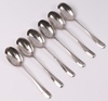 199 | A set of 6 rat tail pattern silver teaspoons Sheffield 1923 by Jenkins and Timm, 115 grams | 60-80 |