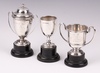 | 185 | A silver twin handled trophy cup, London 1924 (marks rubbed), 6cm, a silver twin handled trophy cup (marks rubbed), a silver goblet shaped trophy cup, 101 grams | 70-90 |