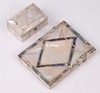 | 187 | A Victorian mother of pearl card case 10cm x 8cm and a ditto trinket box (a/f) 3cm x 6cm x 4cm | 40-50 |