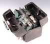 | 193 | Two Victorian silver faceted glass pin jars with silver lids London 1879 and 4 other dressing table jars with silver lids, contained in a leather case | 50-75 |