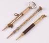 | 204 | A gilt metal propelling pencil in the form of a key, an engraved ditto marked P & G. 12.C with turquoise decoration and 1 other | 40-50 |