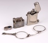 | 205 | A pair of lorgnettes marked 935, a Dunhill silver plated later no.143752 2cm, a Thorne's Swiss Made lighter (a/f) and a metal clip | 40-50 |