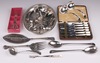 | 235 | An embossed silver plated bread board holder complete with bread board, an octagonal plated platter by Mappin & Webb, bread fork, cake basket and other plated items | 40-60 |