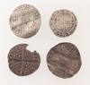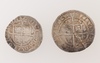 A circular miniature silver compact with engine turned decoration, Chester 1909, (dent to side), together with 1 other Birmingham 1908, both monogrammed
