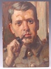 • **Alfred Egerton Cooper R.B.A. (British, 1883-1974) Half Length Portrait of Barnes Wallis in Army Uniform smoking a Pipe, oil on canvas, signed with initials, 32cm h  x 23cm w. Provenance: Sir Barnes Wallis thence by descent. Note: this work was most likely painted in 1915, while Cooper and Wallis were serving in the Artist Rifles. ** Artist's Re-sale Rights may be payable on this lot