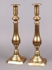 | 678 | Two pairs of 19th Century brass candlesticks with ejectors, on rectangular bases 18cm and 20cm and a pair of Benares brass candlesticks 20cm | 30-40 |