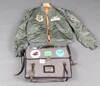 | 652 | A USAF Type L-2B M1-A bomber jacket, an RAF Air Crew navigator/pilots bag containing and A-N US Navy Rude star indicator type 1, 3 pilots dead reckoning computers, a Douglas combined protractor etc | 40-50 |