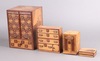 669 A Japanese box with 2 sections and tambour shutter, the base fitted a drawer 24cm high x 17cm w x 16cm d, a puzzle box in the form of a cabinet 12cm x 8cm x 8cm, a 1 other decorated a volcano 9cm x 6cm 50-75