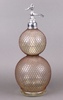 682 A 19th Century glass double gourd soda siphon together with a box containing a funnel marked Seltzogene Powders 40-60