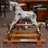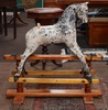 A Barker & Sons, a dapple grey rocking horse on a swing base, circa 1935, worn makers label to the base 89cm h x 89cm l x 34cm w £100-150