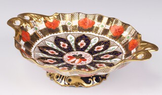 A Royal Crown Derby Imari pattern 2 handled pedestal dish 27cm