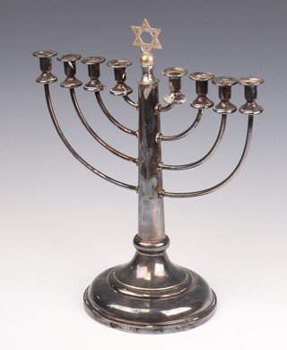A silver plated Menorah, 8 branched candelabra 32cm