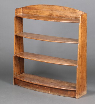 An Art Deco light oak 4 tier bow front bookcase 99cm h x 90cm w x 20cm
