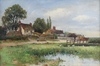 | 840 | E Walbourn, 19th Century oil on canvas monogrammed E W '97, study of a farm pond with figures and buildings 29cm x 45cm | 100-150 |